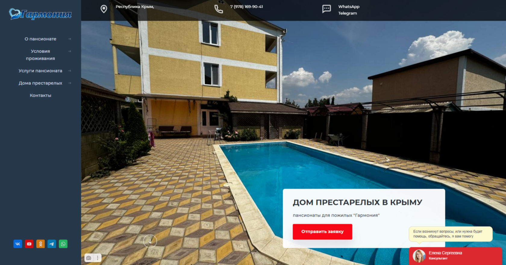 Наше маркетинговое агентство выполнило комплексную разработку веб-сайта для сети пансионатов для пожилых людей «Гармония» (harmonyin.ru), создав современный и функциональный интернет-ресурс, ориентированный на потребности целевой аудитории.